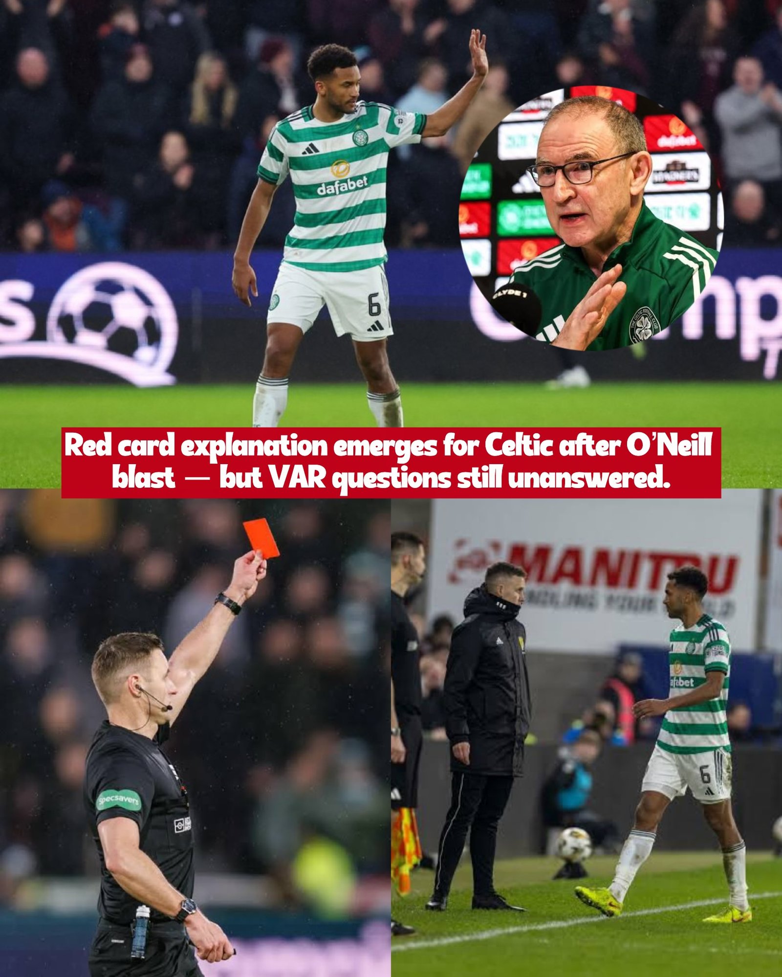 Celtic handed red card clarification after Martin O’Neill fury vs Hearts as VAR mystery lingers.
