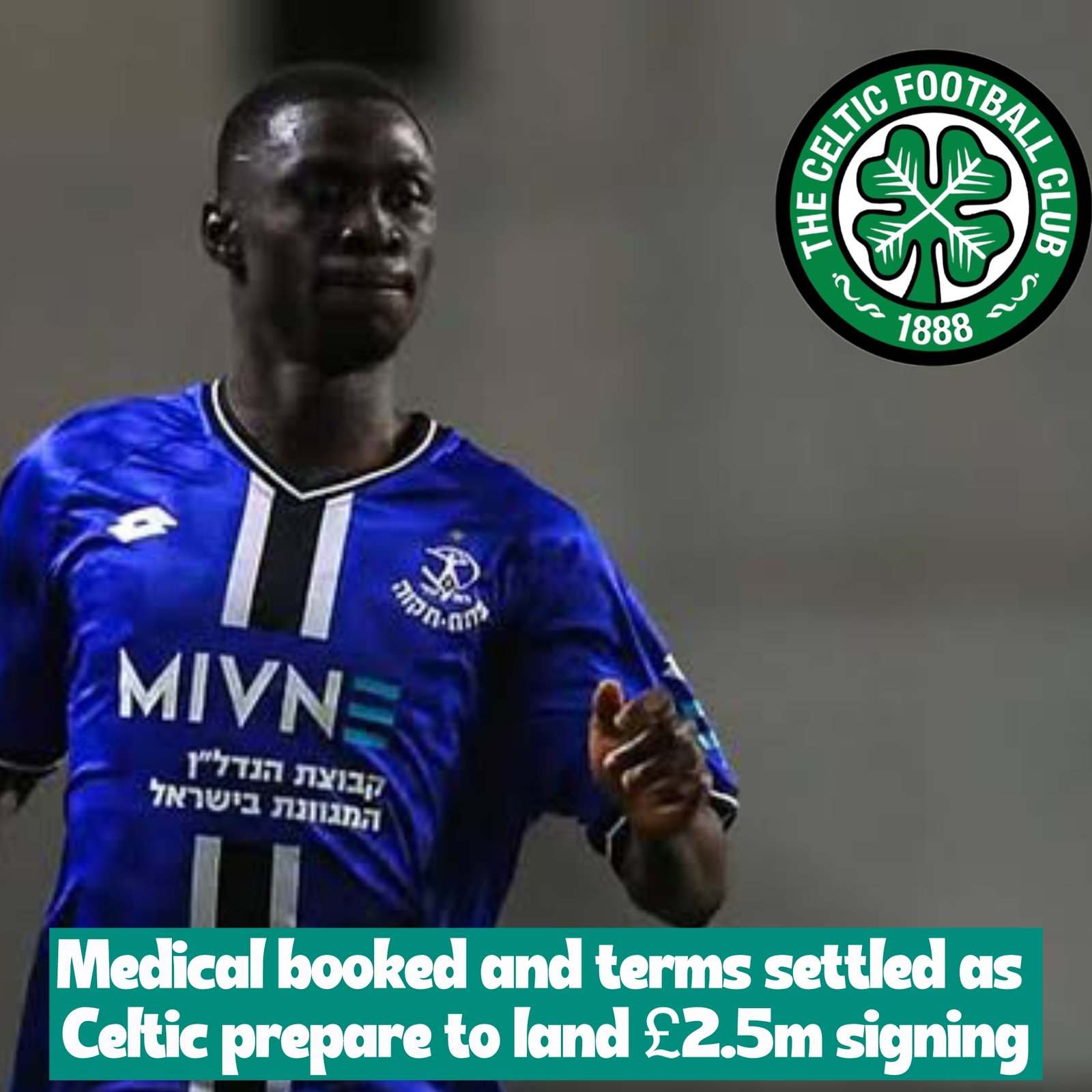 It is understood that Celtic’s medical staff have travelled to Israel to carry out the necessary checks ahead of Ta Bi’s proposed move from Maccabi Netanya. The transfer is believed to be worth around £2.5 million.