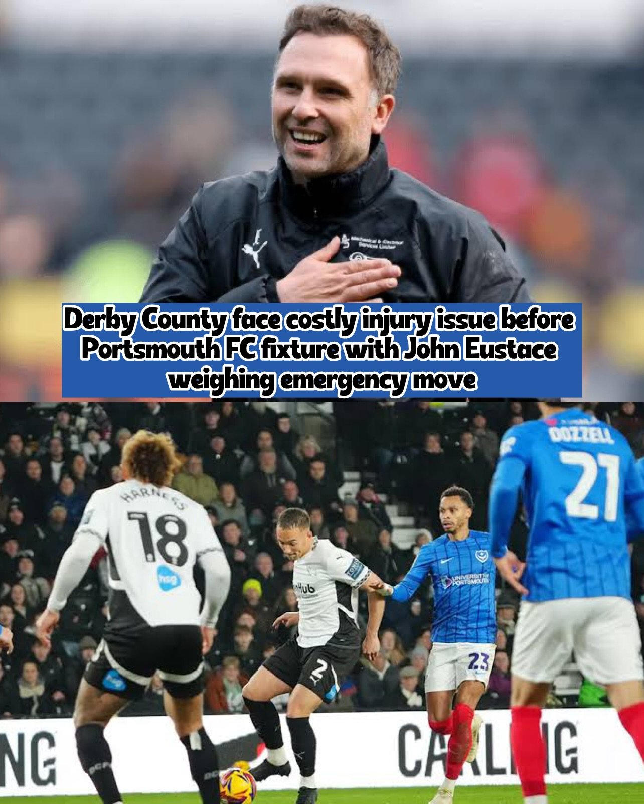Derby County dealt major injury setback ahead of Portsmouth FC trip as John Eustace explains loan stance