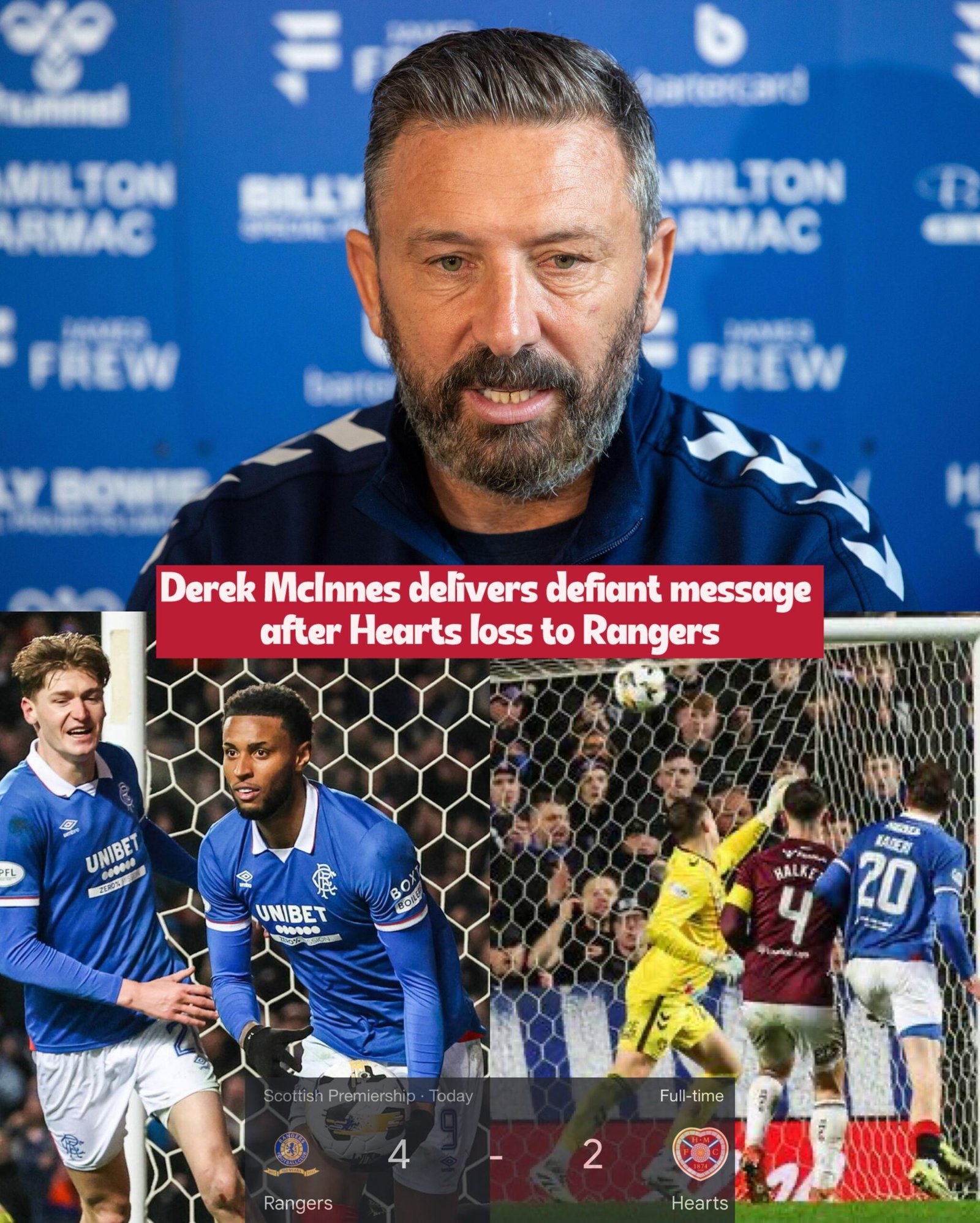 He also pointed to a key missed opportunity in transition, where Hearts opted for a safe pass instead of exploiting space behind Rangers’ advanced full-backs. That decision led to a turnover and eventually a counter-attack, which he felt was a turning point.