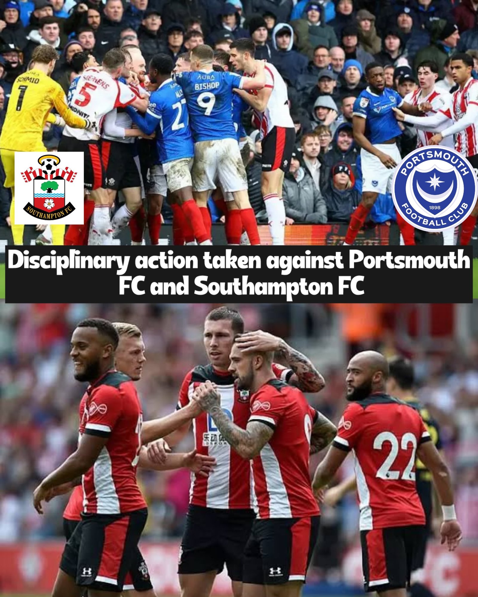 An independent Regulatory Commission has handed down sanctions to Portsmouth FC and Southampton FC following a mass confrontation during their EFL Championship clash on Sunday 25 January.