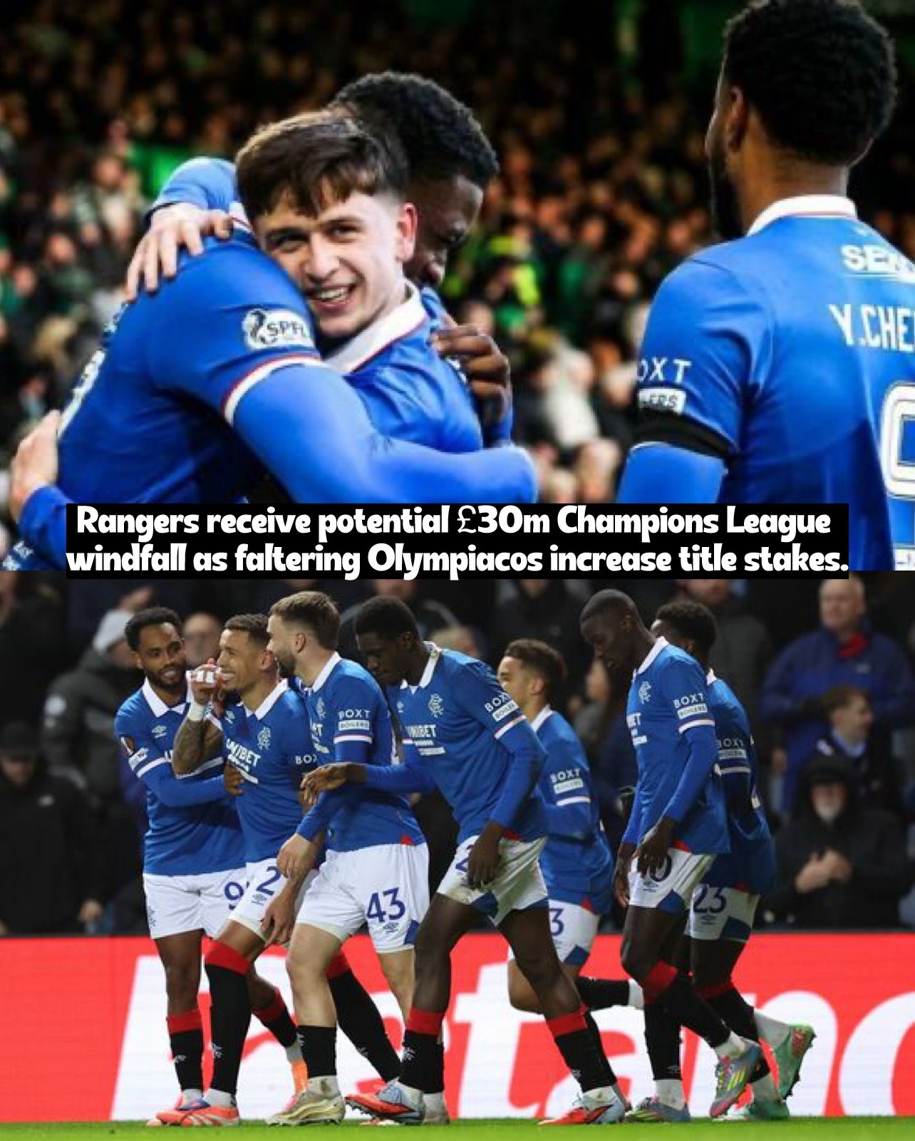 As a result, Rangers would benefit if Olympiacos fail to win the Greek Super League.