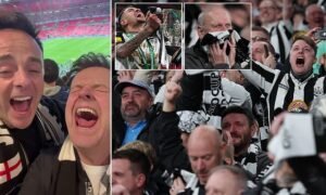 Newcastle’s Carabao Cup victory over Liverpool at Wembley was celebrated by the iconic television duo of Ant McPartlin and Declan Donnelly, who leapt for delight. The Tyneside icons, who are more commonly referred to as ‘Ant and Dec’,