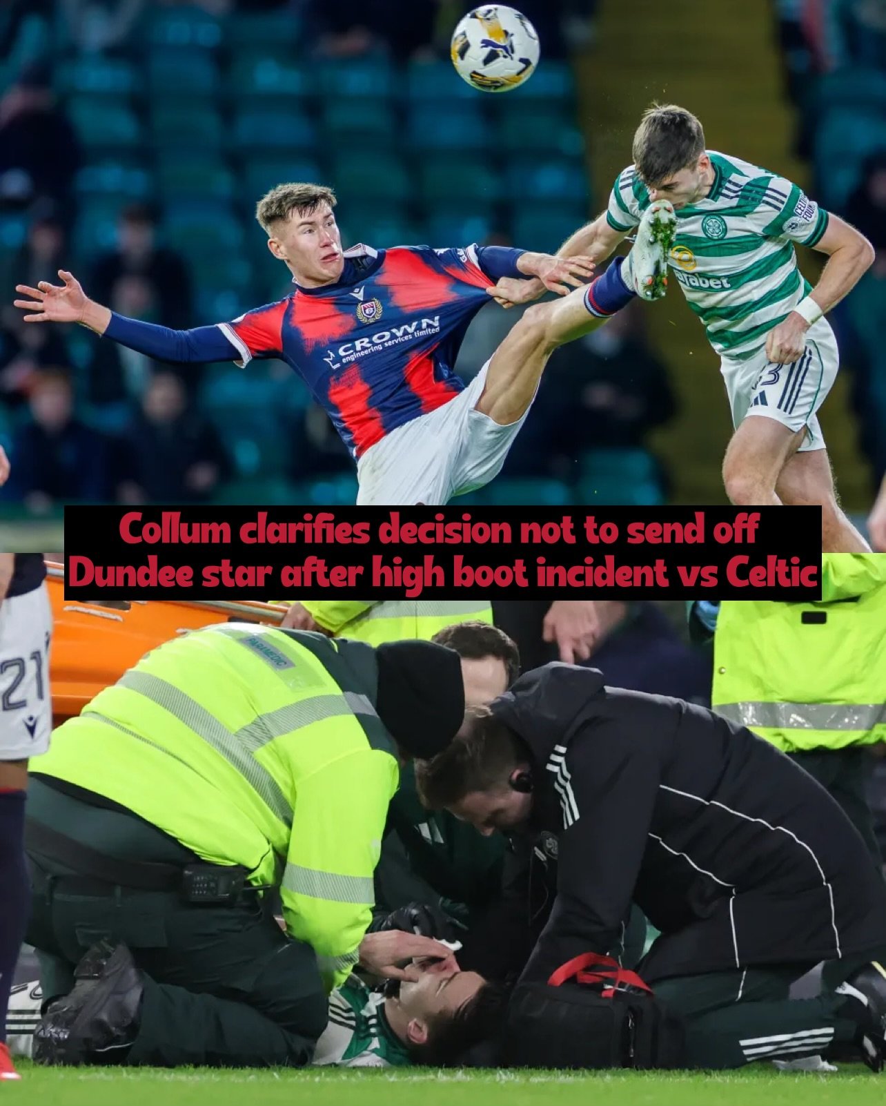 The flashpoint occurred in the closing stages of Celtic’s Scottish Cup tie against Dundee F.C. at Celtic F.C.’s home ground. Tierney was struck by a high boot from Cameron Congreve, with studs catching him in the face and prompting immediate concern.